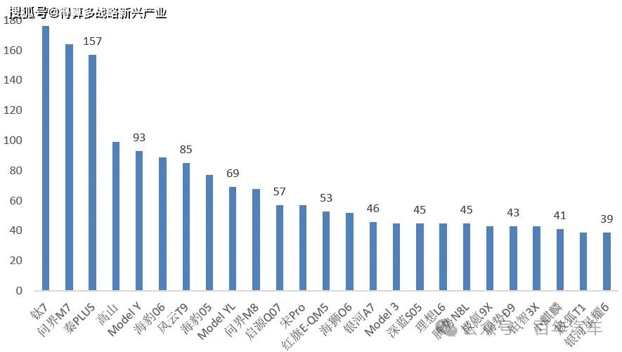 3、11月份新能源汽車銷量——車型結(jié)構(gòu)(排名前20車型)