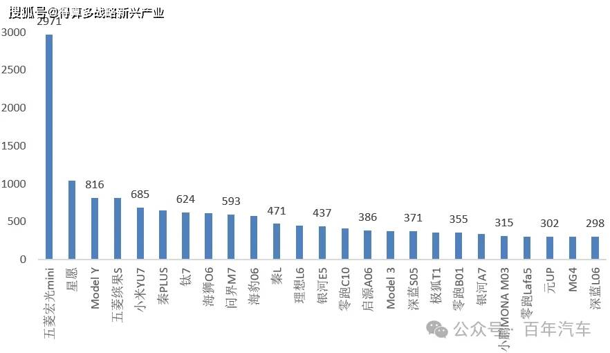 3、12月份新能源汽車銷量——車型結構(排名前20車型)