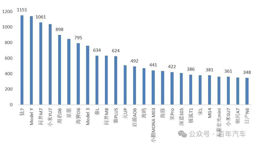 3、12月份新能源汽車銷量——車型結構(排名前20車型)